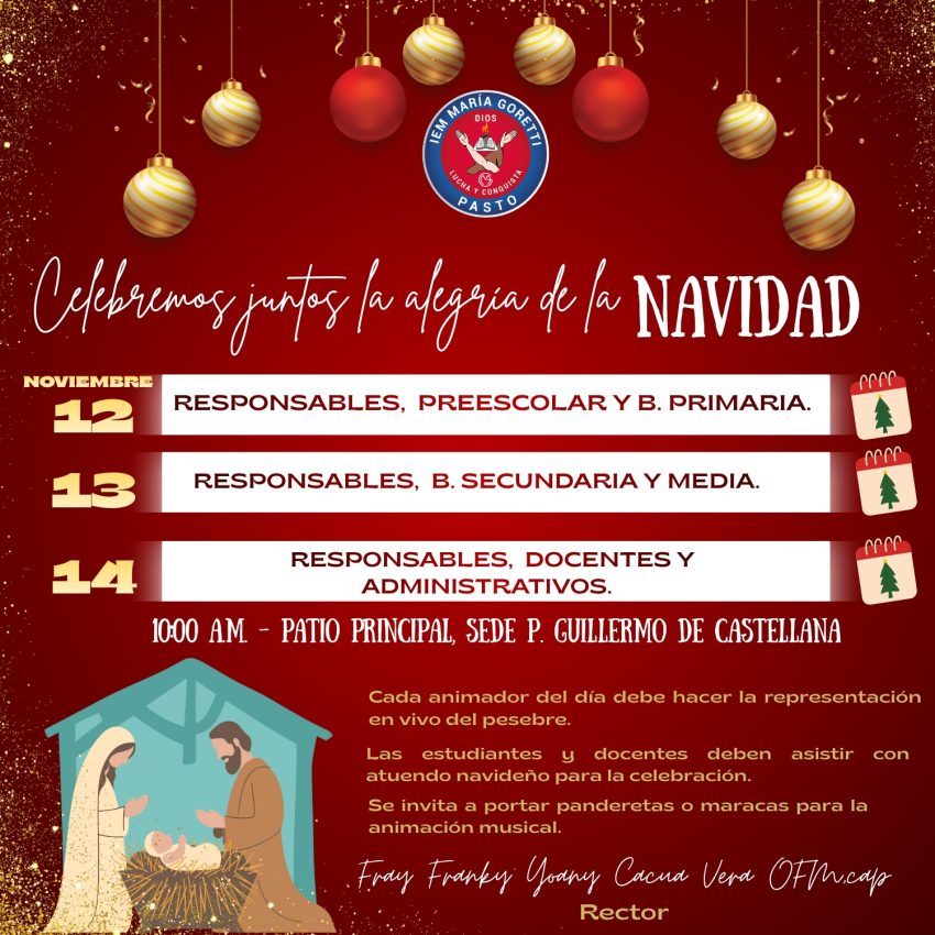 La magia de esta época llega a nuestra institución, y con ella, los momentos para compartir, sonreír y agradecer. Invitamos a toda nuestra comunidad educativa a disfrutar de las actividades programadas con motivo de esta hermosa celebración navideña. ¡Participa, comparte y vive el espíritu de la Navidad en familia Gorettiana!