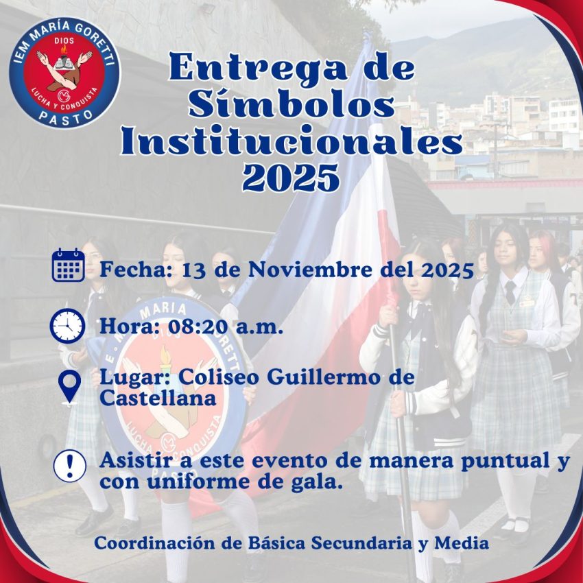 Invitamos a las estudiantes de grado sexto a once a participar en la Entrega de Símbolos Institucionales, una ceremonia que representa los valores y la identidad de nuestra familia Gorettiana.