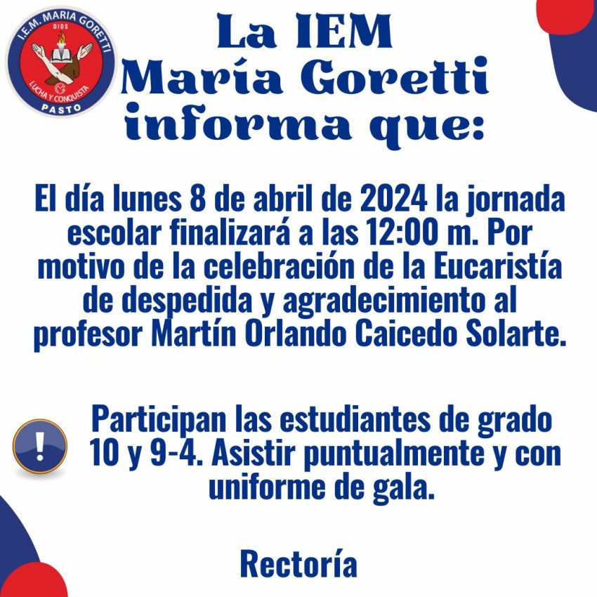 Cordialmente invitados a la Solemne celebración de Acción de gracias por la vida y vocación de nuestro compañero y amigo Martín Caicedo Solarte. Gratitud infinita por su entrega generosa en la formación de la juventud femenina de la Obra Gorettiana. «Toda una vida al servicio del Reino de DIOS».