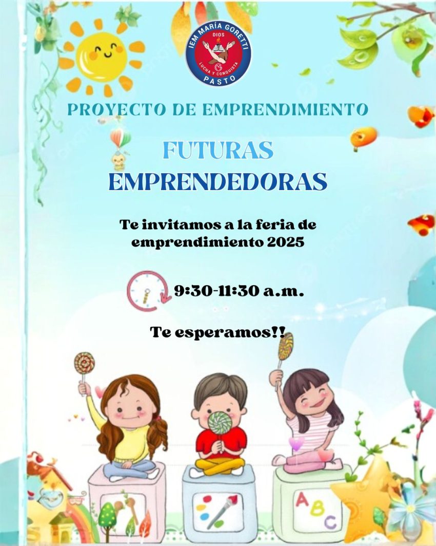 La I.E.M. María Goretti invita a toda la comunidad educativa a participar en la IV Feria de Emprendimiento: Futuras Emprendedoras, liderada por el proyecto de Emprendimiento de básica primaria. Este viernes 24 de octubre, nuestras estudiantes presentarán con creatividad e innovación sus ideas y proyectos. ¡Los esperamos para apoyar y celebrar el talento Gorettiano!