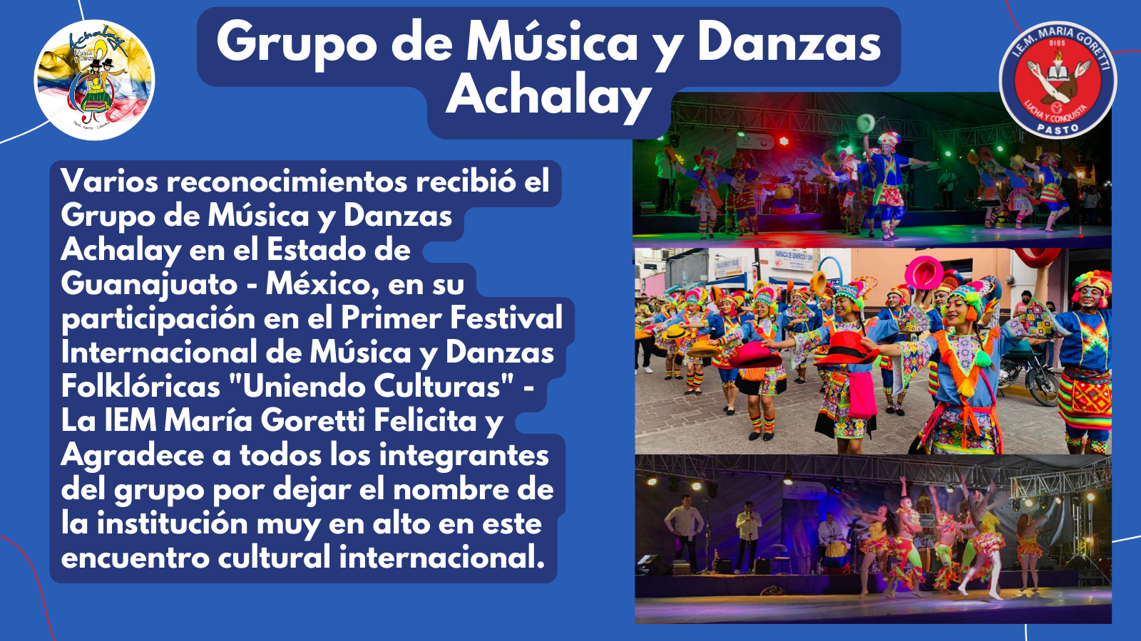 Grados Noveno, Décimo y Once Muestra Coreográfica – Tributo al bello folclor y la linda tierra Boliviana Dirigida por: Juliana Arévalo Egresada Gorettiana Generación 59 Canción: Yo soy de Bolivia…